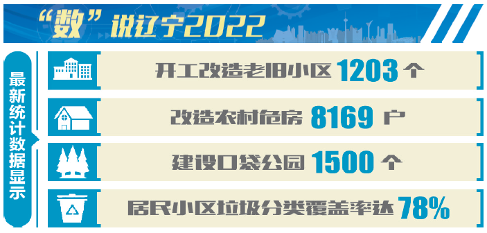 聚焦改善人居环境,我省深入推进城市更新先导区建设和乡村建设行动,在全国率先颁布省级城市更新条例,建设1500个口袋公园,全省城市公共机构、公共场所实现垃圾分类全覆盖,居民小区覆盖率达78%,沈阳等10个城市城区原生生活垃圾实现“零填埋”,农村垃圾处置体系基本实现行政村全覆盖。