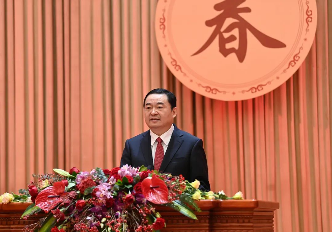 1月19日上午,2023年辽宁省春节团拜会在沈阳举行。省委书记、省人大常委会主任郝鹏讲话,省委副书记、省长李乐成主持,省政协主席周波出席。